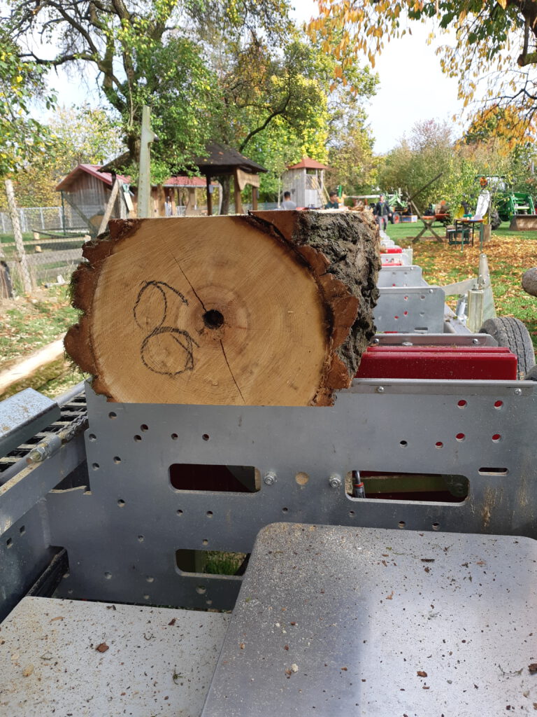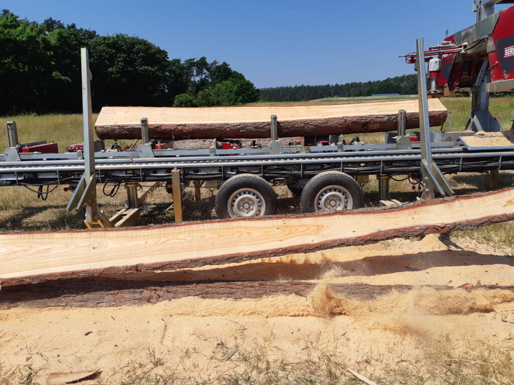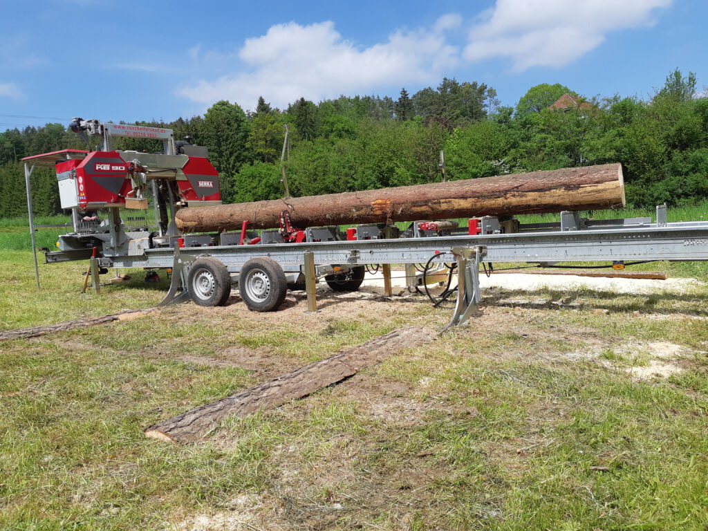Viele Kunden besitzen Bäume auf ihrem Grundstück, die gefällt werden müssen – sei es aus Gründen der Sicherheit, Pflege oder Umgestaltung. Ein mobiles Sägewerk ermöglicht es, dieses Holz direkt vor Ort in hochwertige Bretter, Balken oder Bohlen zu verwandeln. So bleibt der Wert des Holzes erhalten und es entsteht ein regionales, nachhaltiges Produkt, das oft besser und günstiger ist als gekauftes Bauholz.