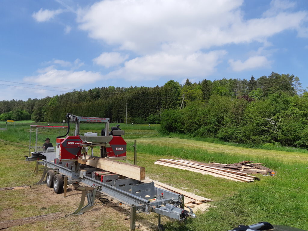 Alternativ können wir Ihr Holz auf unserem Sägeplatz in Urspring (91362 Pretzfeld) schneiden.
